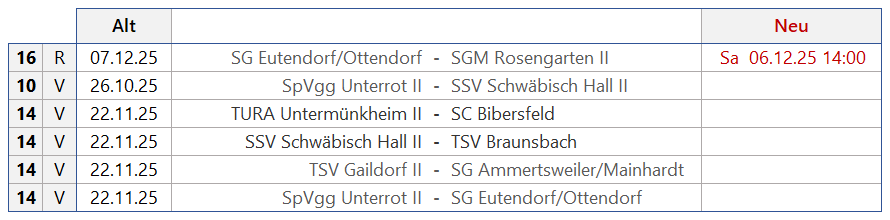| 30.11. | TSV Braunsbach – TSV Hessental II | |