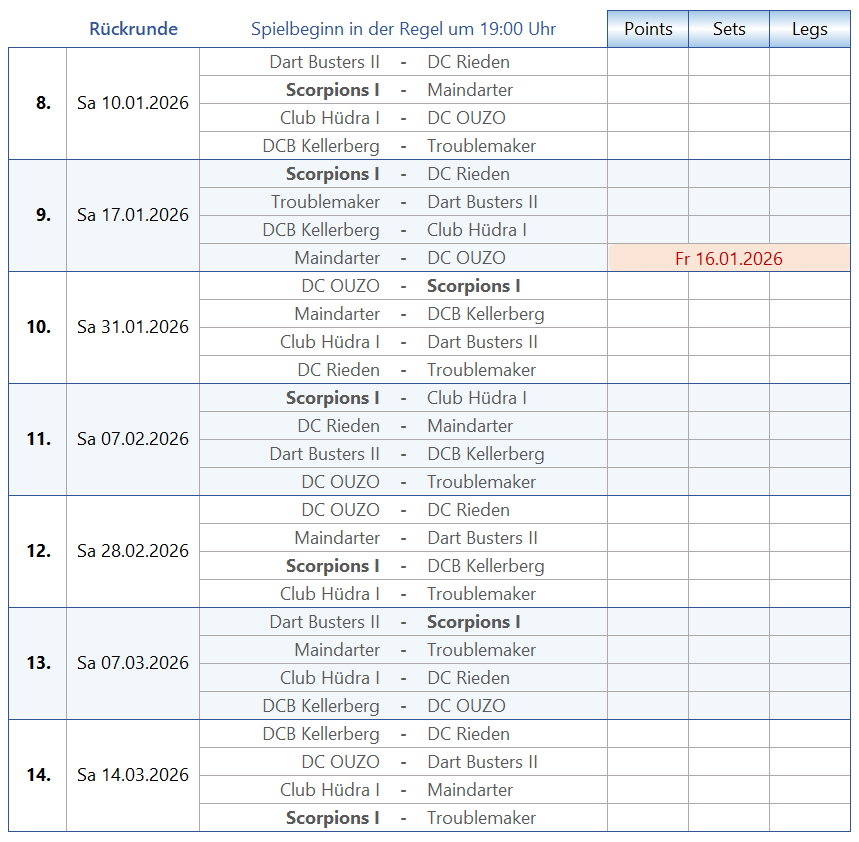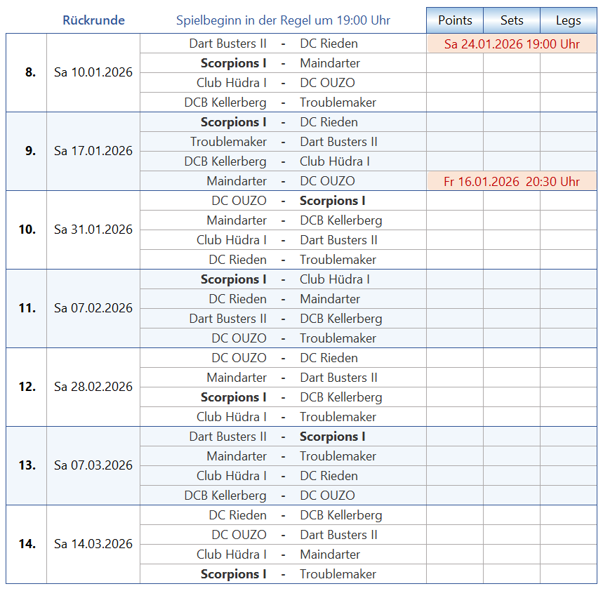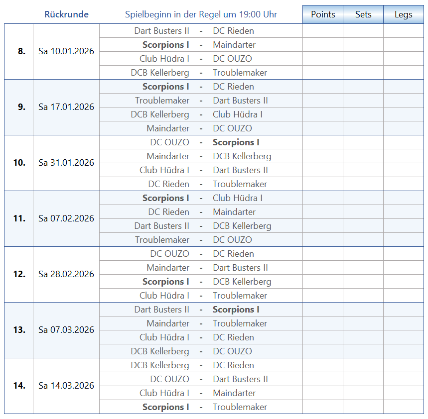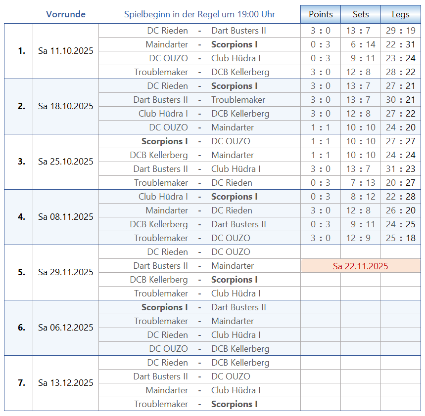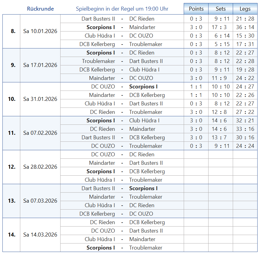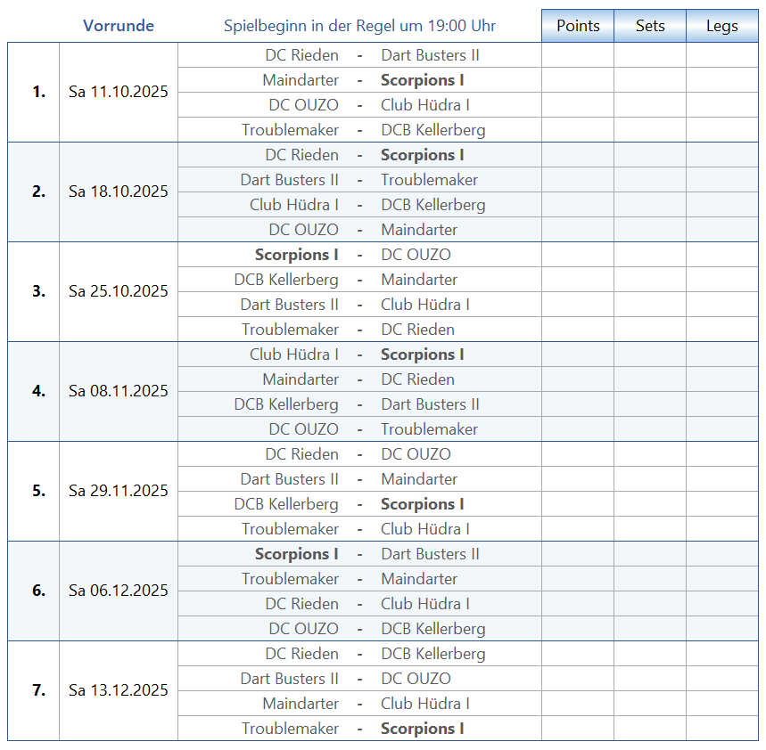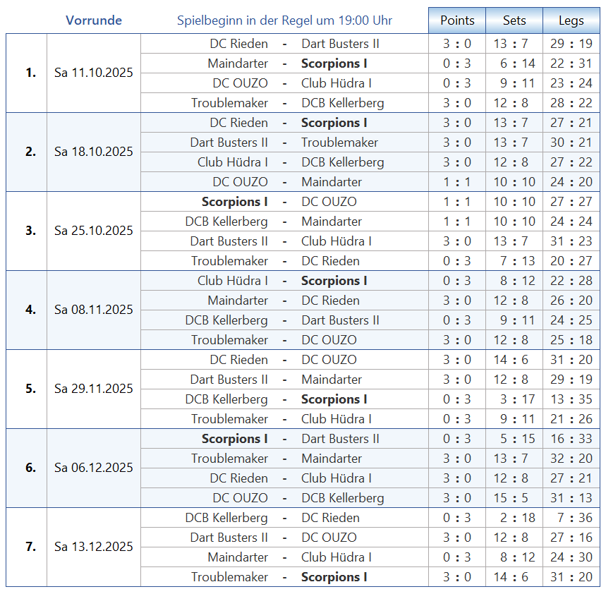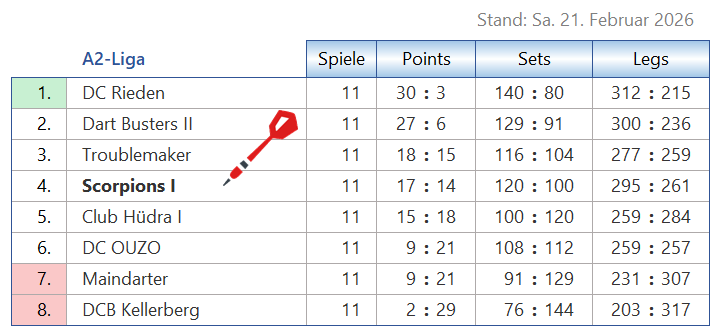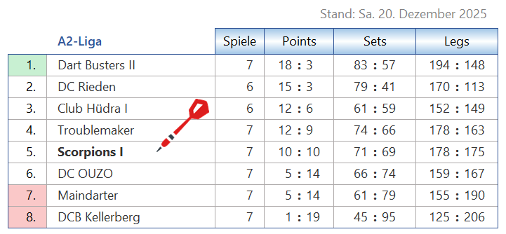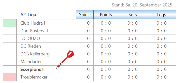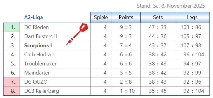 Tabelle & Co Scorpions [1] Seiten: 1 2 3 4 5 6 7 Saison 2025-2 A2-Liga Trikotansicht Spielorte Seiten: 1 2 3 4 5 6 7