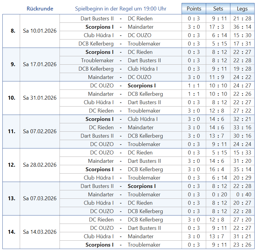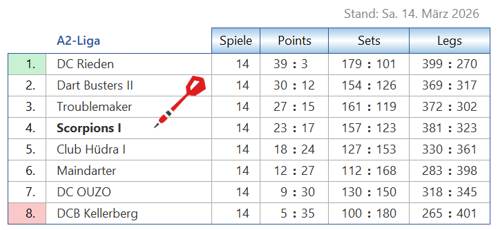 Dart-Trikot der Scorpions Vorderansicht Dart-Trikot der Scorpions Rückansicht